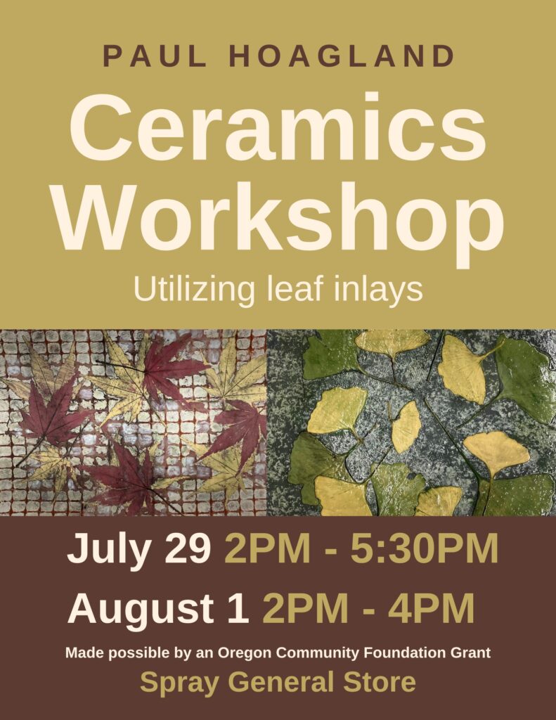 Join Paul Hoagland as he teaches us how to use leaf inlays in ceramics. Participants will leave with one ceramic plate. Must be present at both sessions. July 29, 2-5:30pm…