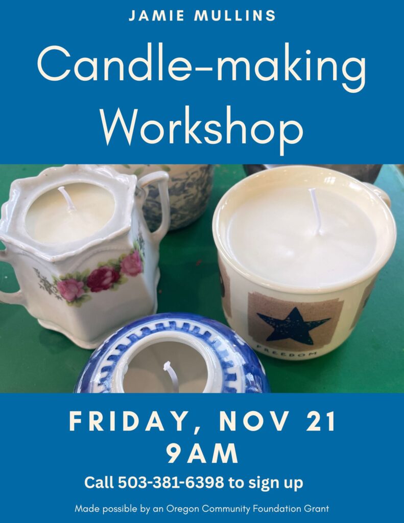 Join us as we take old teacups, glasses or small bowls to repurpose them into candles. Jamie Mullins will be visiting from the South Morrow Art Center and she will…